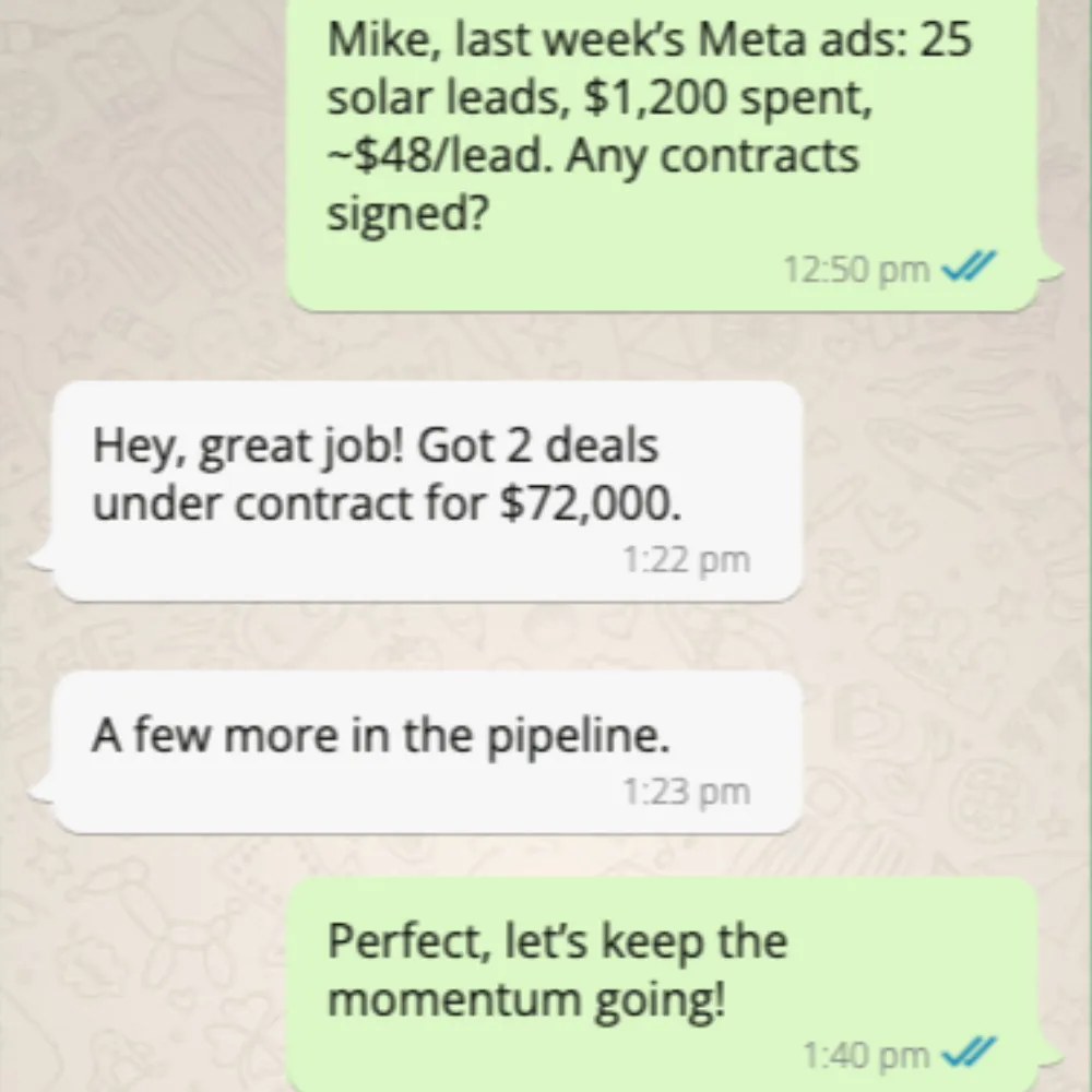 Totally. You donβt need to touch the ads. We handle setup, launch, optimization, and reporting. You just reply to leads and close deals as they come in.